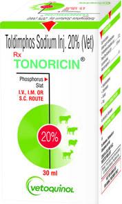 Tonoricin conatin Injectable phosphorus recommended in Pica & hypophosphatemia in ruminants. Avaliable in 30 ml pack
