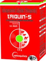 TRIQUIN-S is used for treatment of surra or trypanosomiasis in Camel, Cattle, Horse, Sheep & Goat. Available in 2 gm vial